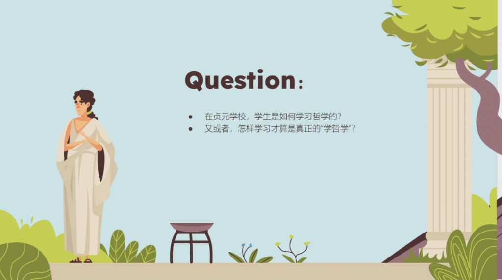 许多人可能会好奇:在贞元学校,学生是如何学习哲学的?又或者,怎样学习才算是真正的“学哲学”?但我认为,这样提问本身就已经忽略了哲学中一个重要的层面。谌洪果老师提出了另一个词——“做哲学”,这个说法让我豁然开朗。在我看来,“学哲学”和“做哲学”虽然只是一字之差,却有着本质的不同。随着在贞元学校哲学课程的持续浸润,我对这种差别的体会也日渐深刻。