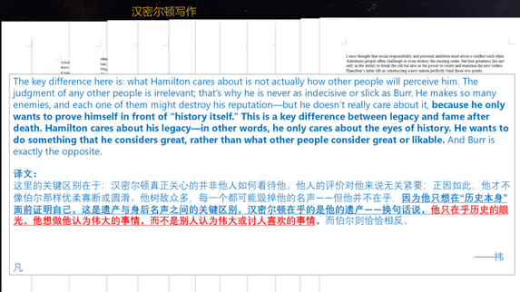 而祎凡同学对比汉密尔顿和伯尔两个人的人生态度,他发现了深刻的不同: