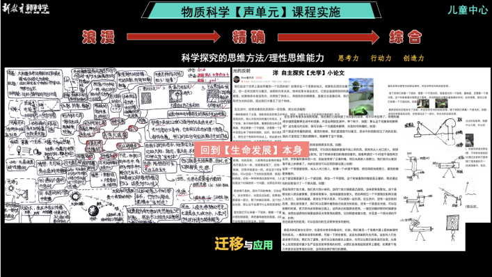 那么,具体如何能够实现“训练思激、发创造力、点燃生命的渴望”呢?就是“以儿童为中心”的基于发生学的单元整体教学大模型和课堂对话大模型,借由这两个模型进行每个单元的课程设计与实施。