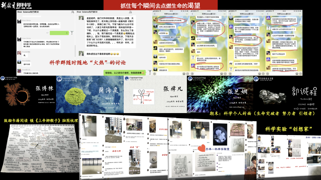 而这一切,也要靠作为教师的我们,要足够敏感足够专业,去抓住孩子生命成长的每一个瞬间,去点燃他对科学对生命的热情与渴望,比如光谱书籍阅读的推进与讨论;比如科学群内随时随地的分享、讨论与点燃,关乎天地万物一切孩子感兴趣的现象与问题都可以抛在这里,并及时去回应去互动;比如到了期末,可以根据孩子们生命突破与发展的不同,为他颁发独一无二的独属于他个人的与本学期科学内容相关的个人专属科学封面,以此激励他在科学的领域上的继续探索。