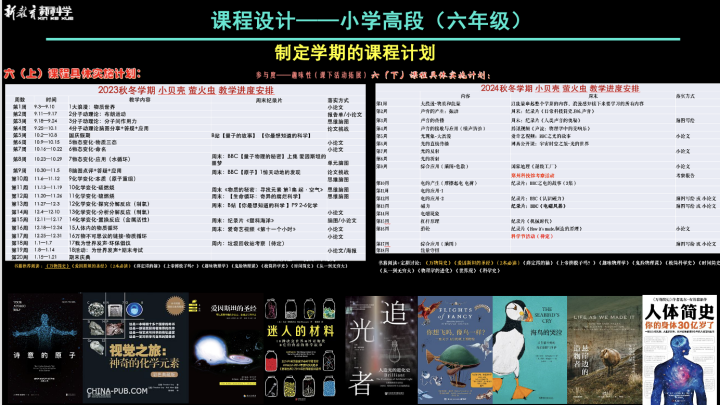 每个学期开始之前,我们都会制定非常详细的课程计划,具体到课时安排、课后落实、课下追踪,同时也提前为孩子们挑选适合当前阅读的科学书籍,借广谱书籍的阅读来提升视野。