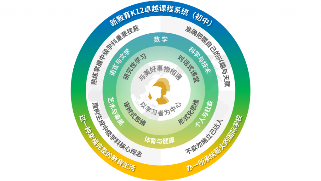 初中学生成长目标:建构生成各个学科核心观念(中级),熟练掌握各个学科核心技能(中级),能持守“不欲勿施、立己达人”的信念与世界良性互动,能找到自己真正感兴趣且拥有天赋的领域。