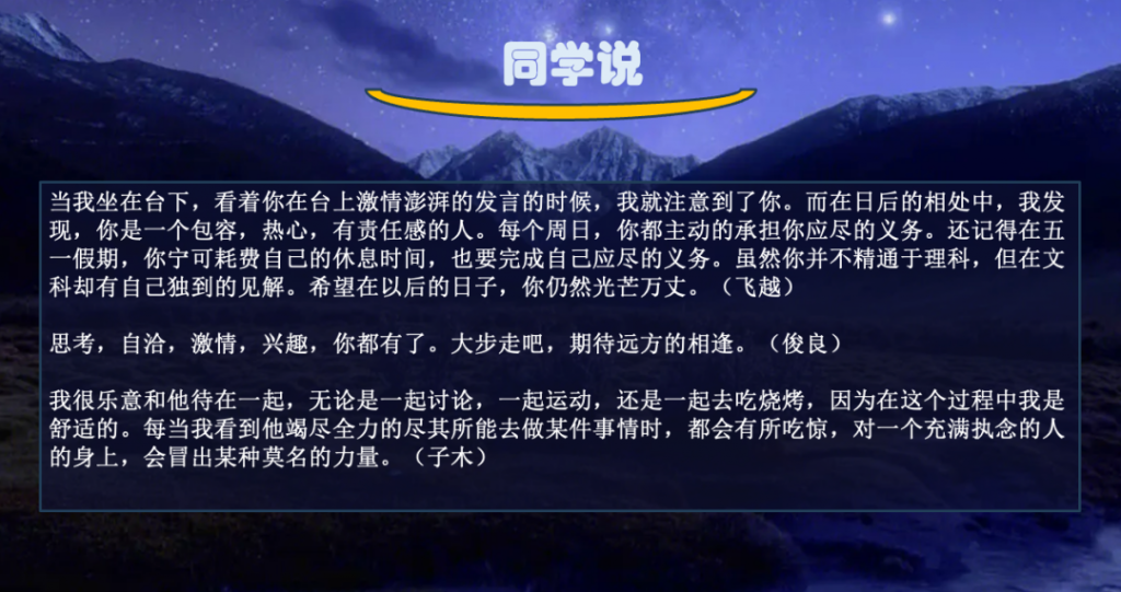 a:而下面几位同学,也都很好的总结了自己这一个学期。