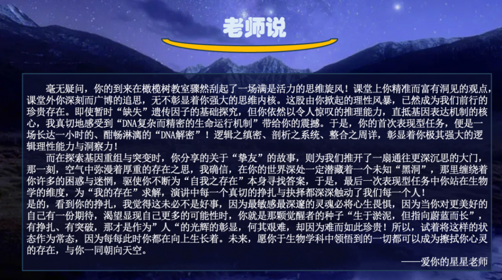 b:是啊,通过他的思考,我们也真正看到了一个被生物学科打动的生命。