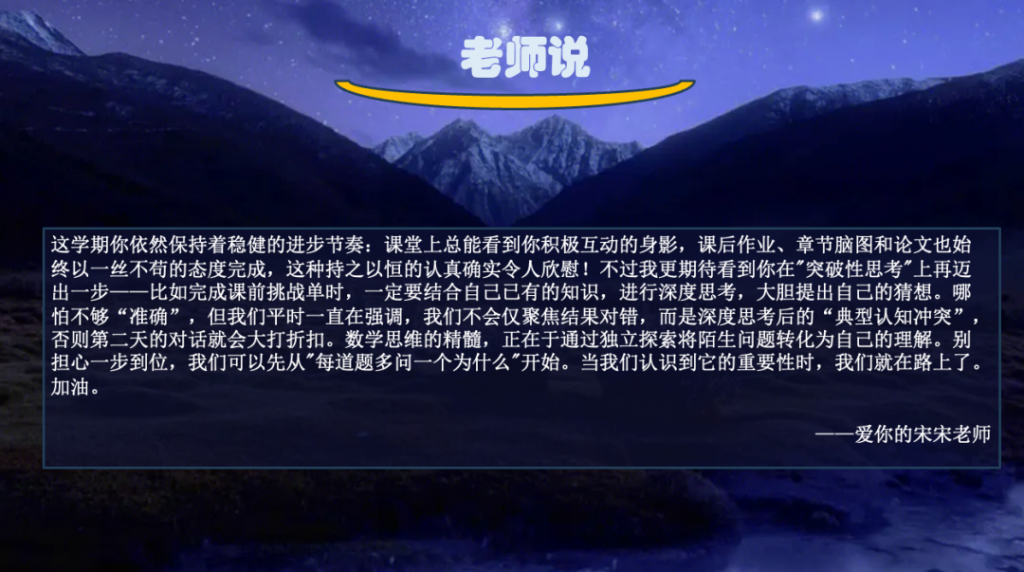 a:从平面到空间,通过这样的已有经验的迁移与运用,瀚同学真正打开了更高维空间的一扇窗。这也正是数学魅力的所在。