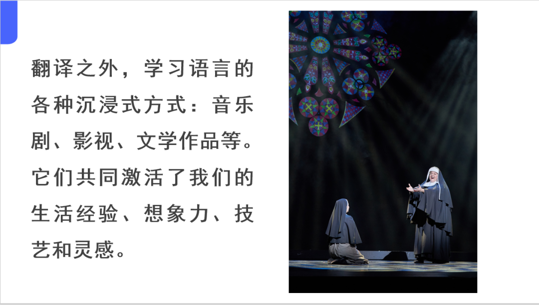 实现视域的融合与平衡我从翻译的角度做了简要的梳理,但是我讲翻译,当然不仅仅是讲简单的文字翻译,我想表达的是,只要是一个语言的对话过程,只要你想学习另外一种语言,就会涉及到翻译或者转译的问题,就涉及到你对另外一种语言如何理解以及如何在这样的理解的基础之上,化为你的内在的生命本身的过程。所以说,在翻译之外,包括语言的各种沉浸式的方式,包括我们这几天大家都看到的音乐剧、影视文学作品,包括各种传记等等,所有这些大家翻译的一种语言方式,它共同激活了我们的生活经验、想象力、技能和灵感,当然也包括我们的道德判断能力。这一点是非常重要的,这应该说是语言的最高的境界,我待会讲到关于语言的工具化和语言的本体目的性的时候,还会给大家讲一讲。
