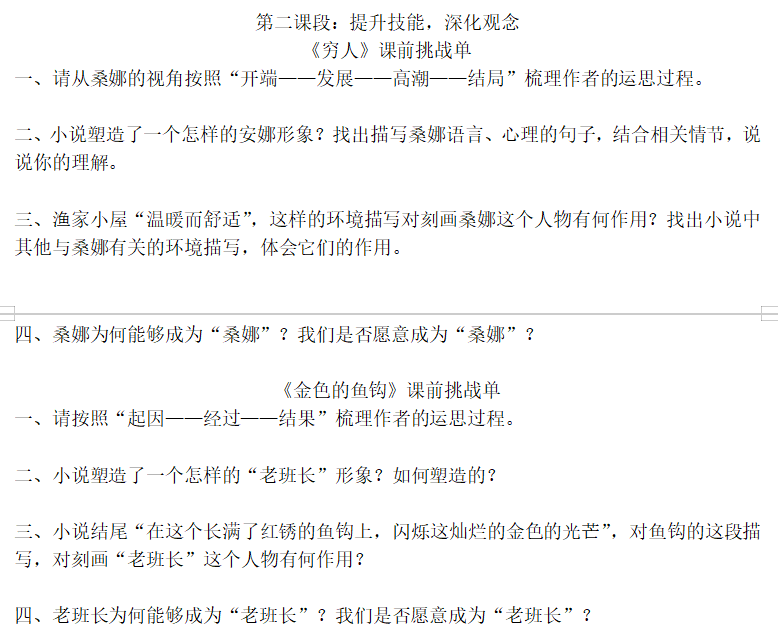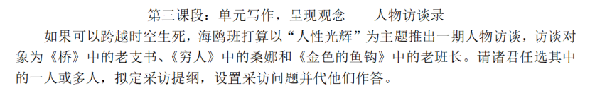 第二课段,是对第一课段的深化,挑战单设计的底层逻辑与第一课段的《桥》是一致的,只是因为课文不同,在具体的某些细节上,有差异。