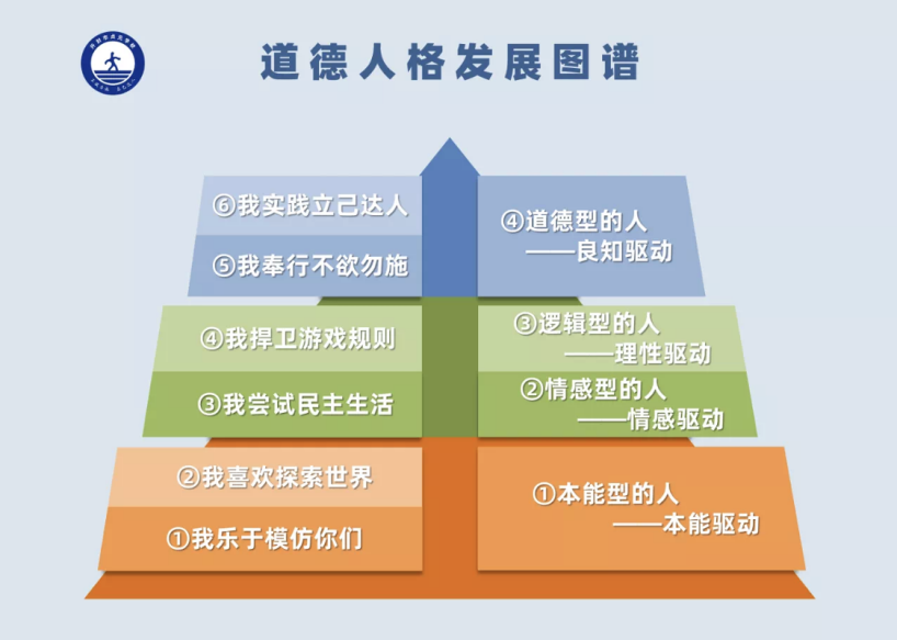 需要说明的是,对于六年级的孩子而言,采访提纲的形式不是聚焦点,只要孩子们能够围绕人物的抉择时刻进行提问并以“神入”的方式代采访对象作答即可。这样的课程设计,就是为青春前期孩子们的生命注入力量,经过与这些卓越人物的精神交流,孩子们强健自身精神,尝试探索自身的理想信念,为一生的发展奠基。设计完整个单元的挑战单后,便开始正式进入课堂教学环节。先是孩子们独自穿越挑战单,之后,教师从孩子们的挑战单中挑选出典型认知冲突,课堂之上,师生、生生围绕典型认知冲突以课文为依托展开对话,在对话的过程中,运用核心观念与技能,建构核心观念。需要说明的一点是,在进行课堂讨论的时候,我们会引入我们的《道德人格发展图谱》。我们尝试将我们的《道德人格发展图谱》作为思维工具,去思考老支书何以成为“老支书”,我又如何成为“我”。