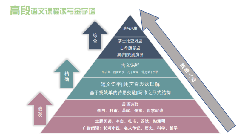 王志江校长制图在这个生命拔节生长的过程中,小学高段语文课程肩负着独属于自身的使命。这,是我们的小学高段语文课程读写金字塔,我们的统编语文教材的学习,属于精确部分。那我们的统编语文教材的穿越之旅又是如何助力于生命的提撕,如何为生命筑基,助生命成长的呢?二、一路的风景——语文课堂教学模式的新探索在王志江校长的指导下,我们尝试建构了基于发生学的语文大单元教学模型。当我们讲到“模型”,脑海中首先浮现的可能就是“四四方方”“规规矩矩”“毫无生机”,可能会有一种生命被框住的错觉。其实,“模型”有些类似于“道生一”的“一”,这个“一”,是内容与形式的合一,在这个“一”的基础上,可能会有二,有三,乃至有万物。“模型”,不是固步自封的拘束,而是无限敞开朝向未来的创造基石。(一)单元教学整体设计的发生学模型