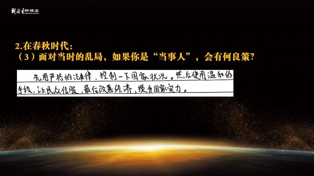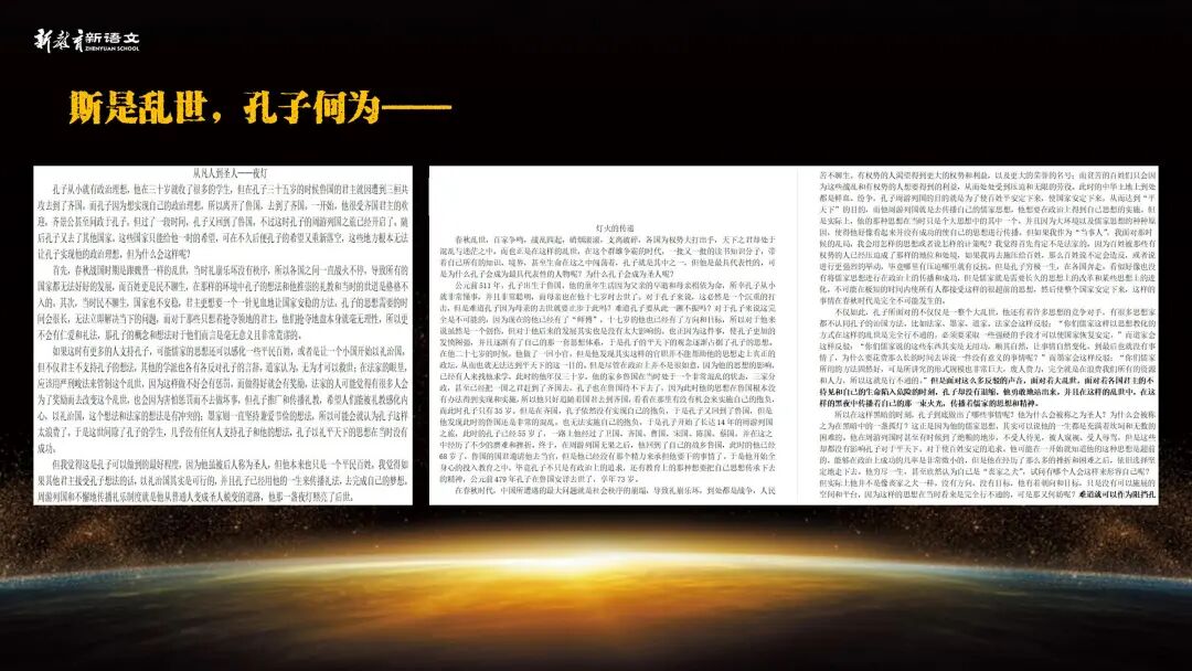 综合阶段,应当引导孩子们继续思考“孔子和诸子百家遭遇的问题,我们是不是也同时在遭遇?”