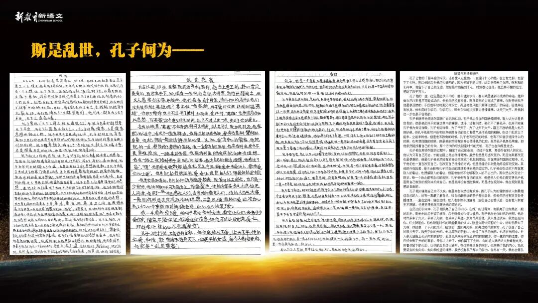 “当时的乱世中也出现了许多的学派,他们各有各的想法,秉持着自己的观念。(接着,这个孩子系统地介绍了儒道法墨的观念,以及各派对儒家的态度。)(最后总结)这些学派中我觉得儒家是最贴合当时时代的“良药”的,但孔子的观点也有很多人反对,因此他在鲁国无法真正的实现他的政治理想。于是孔子决定去周游列国,去寻找可以实现理想的机会。”