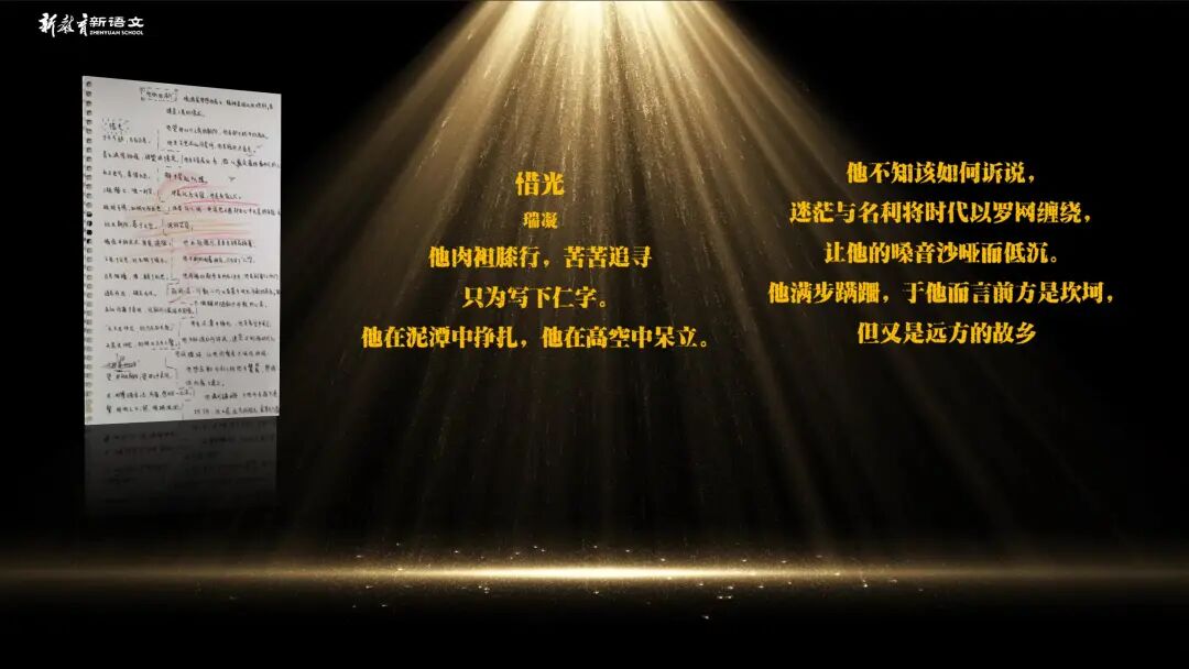 司马迁曾说过他不能“让”,那么我们呢?我们是否能够接受这千百年来流传的使命,为天下,去努力前行着?成为擎火者,成为火种,成为新的光亮。”