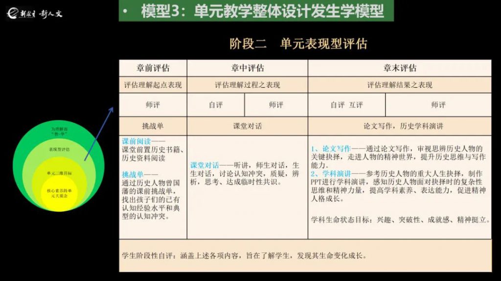 章末评估:以论文写作和学科演讲的形式,审视思辨历史人物的关键抉择,提高学科素养,促进精神人格的生长。