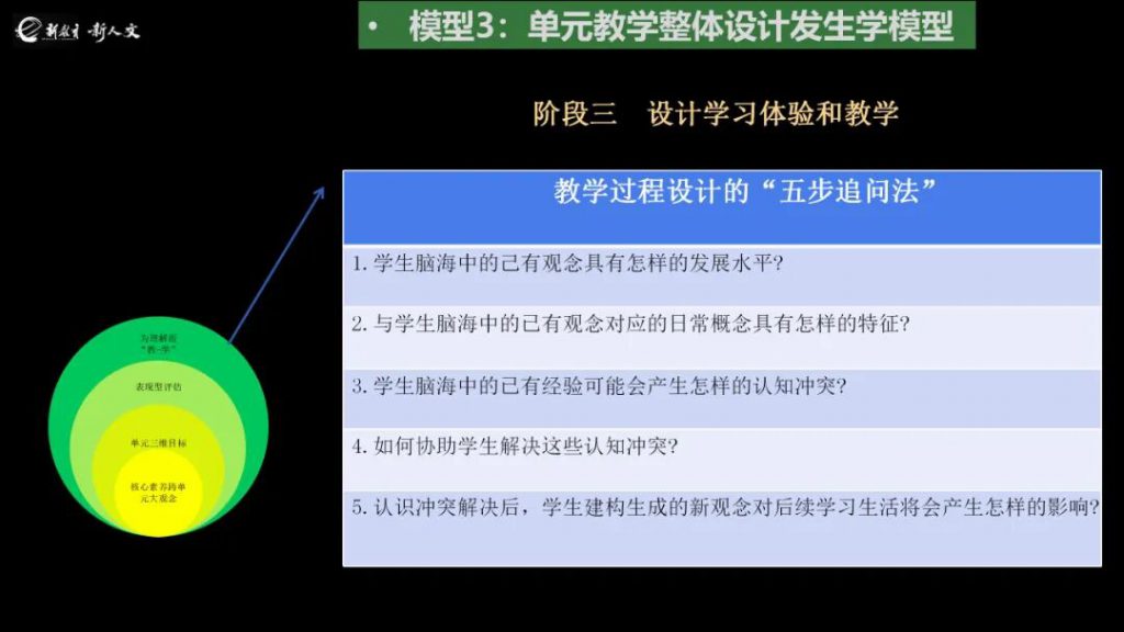 阶段三、设计 学习体验和教学,我们采用的是五步追问法。