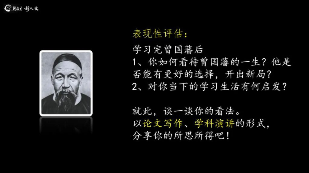 核心技能:通过课堂对话,对曾国藩人生关键抉择处的分析,揭示人物内心的精神发展。能够通过写作,为曾国藩立传,并通过演讲与伙伴分享观点;