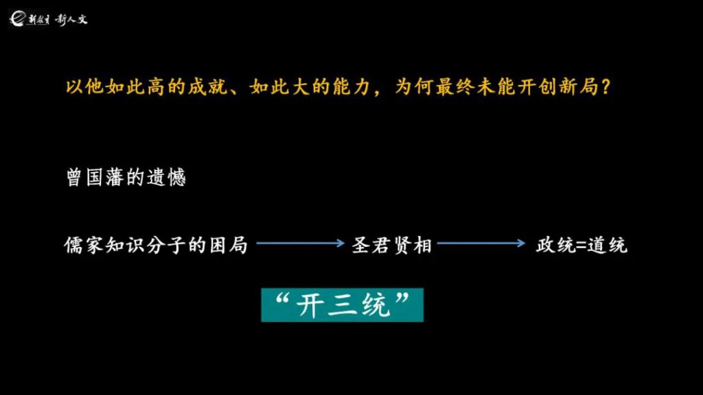 要打破这个困局,关键在于实现“开三统”的突破——将道统、政统、学统分开,让道德归道德,制度归制度,开创出新的政治局面。所以他试图在不变更根本制度的前提下进行修补,这注定无法开创真正的新局。